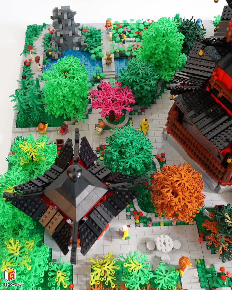 塔下的景区按比例来的话占地还是有点多,所以在搭建过程中将景区内的凉亭、绿化、水池重新做了一次整合、精简,整体效果还是不错的。