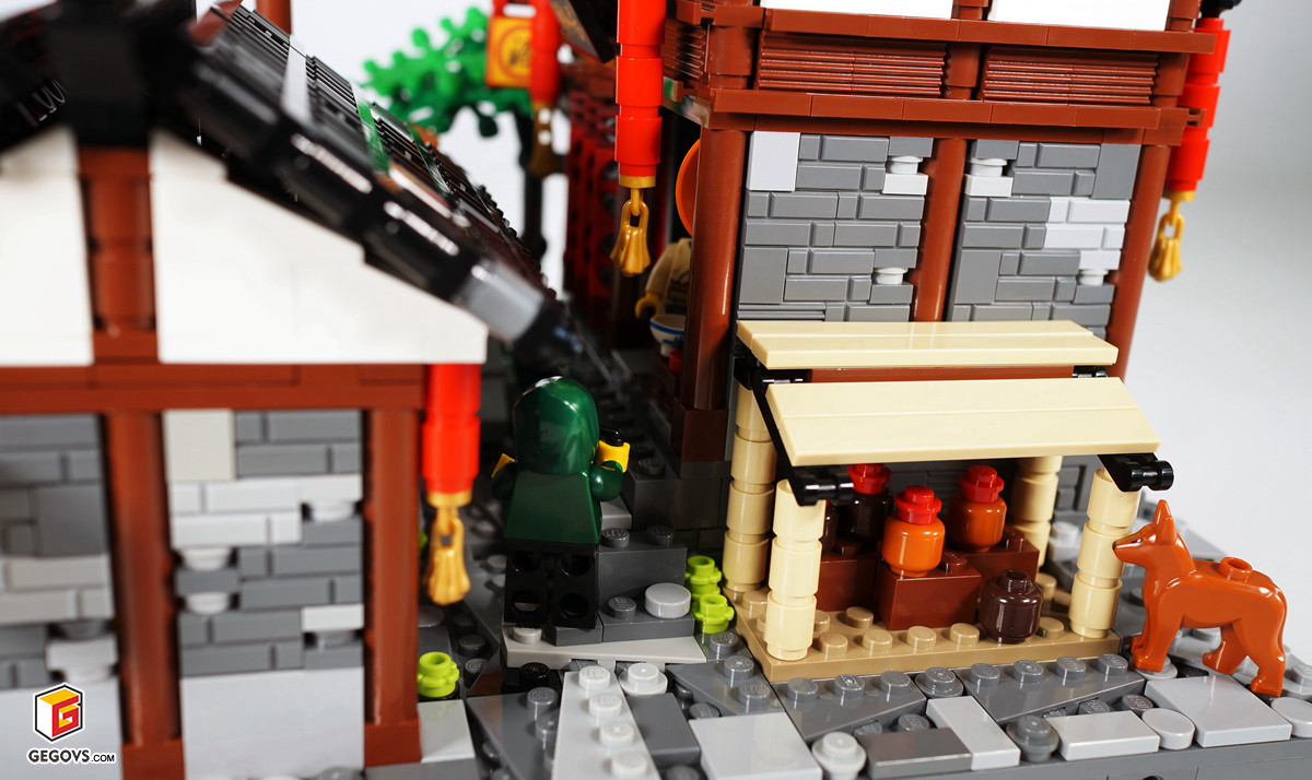 这是一个想象中的高山流水、傍水而居的世外桃源小古镇,整个小镇依山水而建,从低到高,错落有致。这次做的是古镇的第一部分,石桥和石碑牌就是入镇口的象征,相对来说也是地形最低的一部分,不过还是做了一部分的高低落差,大家从前面的包子铺到后面的小酒肆还是能看出来的,后续的作品自然会随着地势越来越高。建筑上则是融合了中国西南多地的风格,所以你能从这上面看到湖南、四川和贵州等地的影子。两个主建筑的屋顶部分都可以方便取下,以便查看内部细节和把玩。由于传统中国建筑体量都是比较大的,要浓缩成这样的中国风小景非常不容易,取舍中难免有不足之处,还请各位多多指教,谢谢!